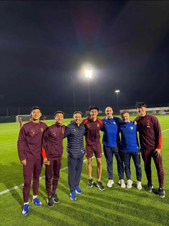 开云品牌-师徒再聚首!前广州球员与卡纳瓦罗合影,曾一起夺2019年中超冠军